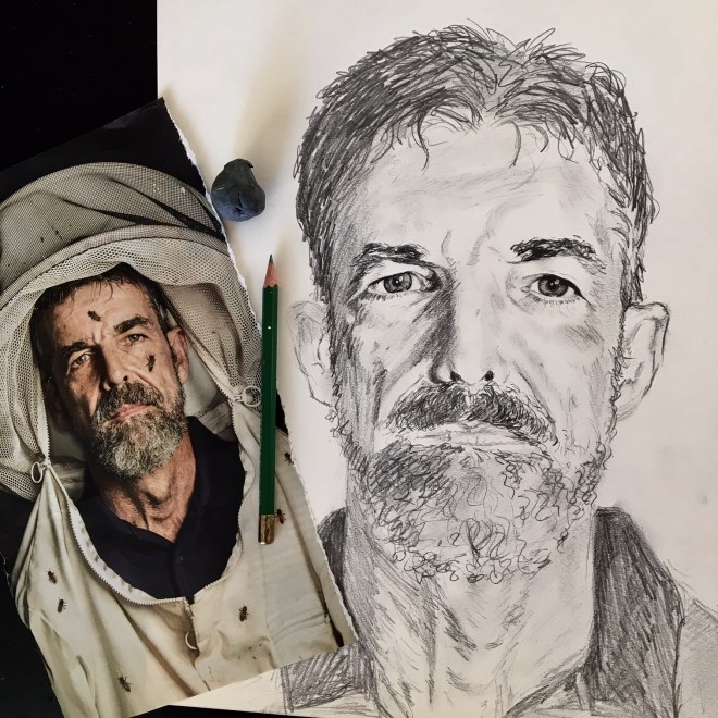 The image of the beekeeper caught my eye and made me pause, because of the depth in his gaze. Like he knows things, but isn’t going to gush them all out at once. (Also, he is probably thinking about something a little bit funny but trying not to smile for the photo.)